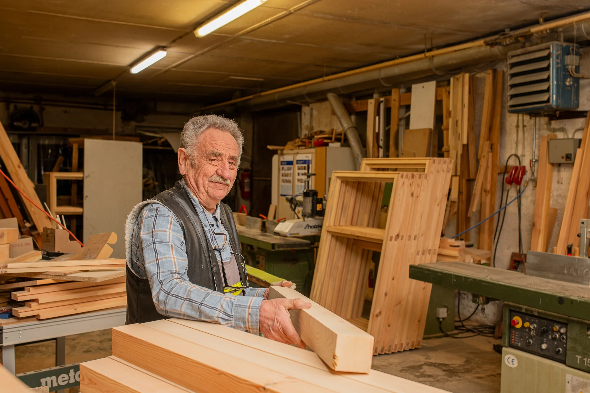 Als Holzschreinermeister führt er seine eigene Werkstatt mit derselben Hingabe, Präzision und Leidenschaft, mit der er jedes Projekt angeht – vom ersten Schnitt bis zur letzten Schraube.